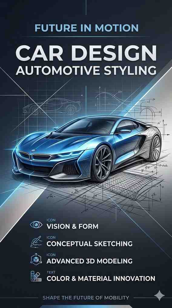 This creative program focuses on the aesthetic and ergonomic design of automobiles. It covers the journey from concept sketching to Class-A surfacing and 3D modeling of vehicle exteriors and interiors.